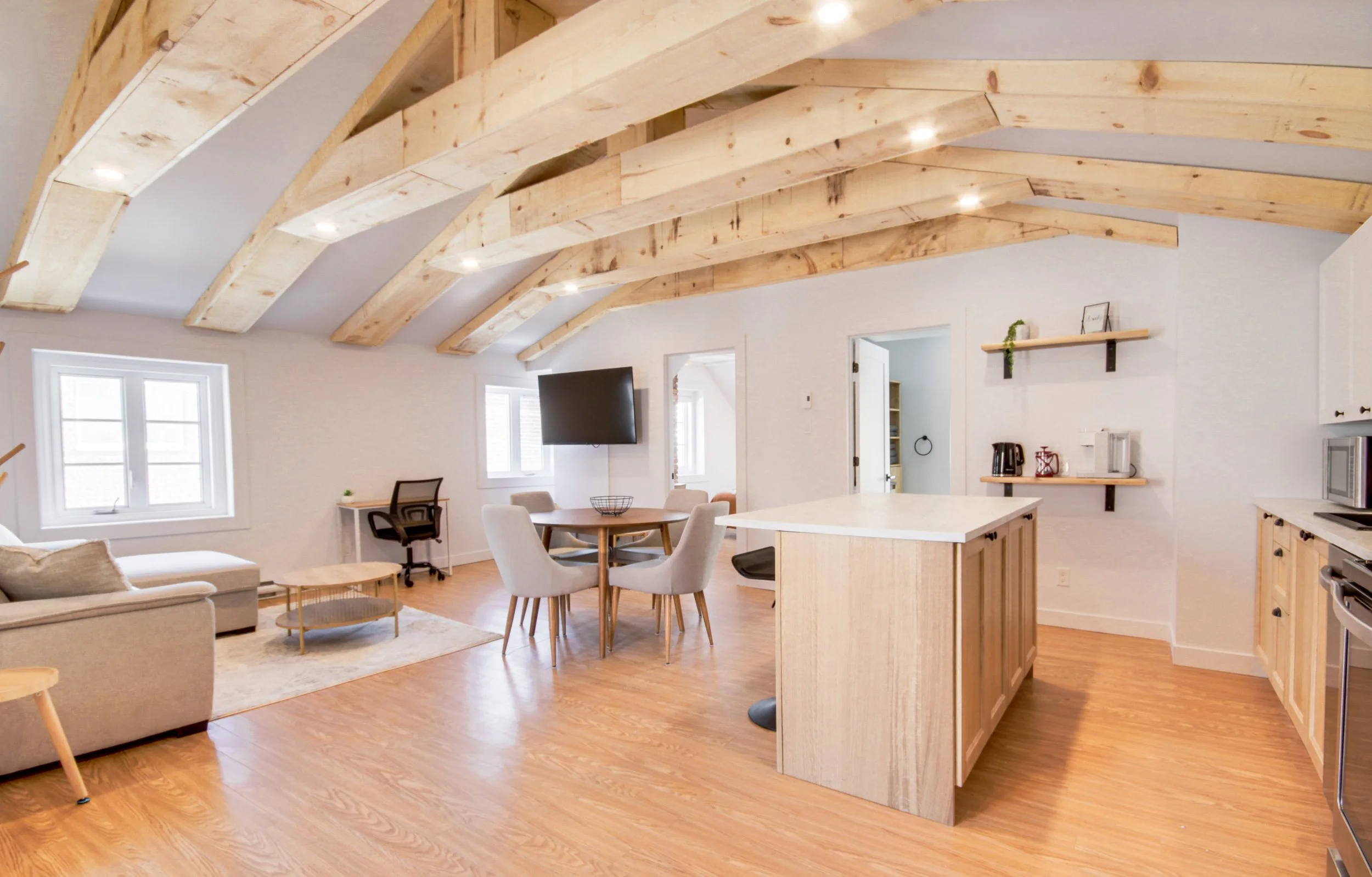 Appartement 2 chambres (3 lits) et 1 salle de bain, situé dans un immeuble historique de plus de 155 ans, lumineux et restauré avec soin. En plein cœur du centre-ville de Trois-Rivières, à quelques pas des restaurants, bars et festivités de la rue des Forges. Idéal pour les séjours touristiques ou professionnels, alliant charme historique et confort moderne!